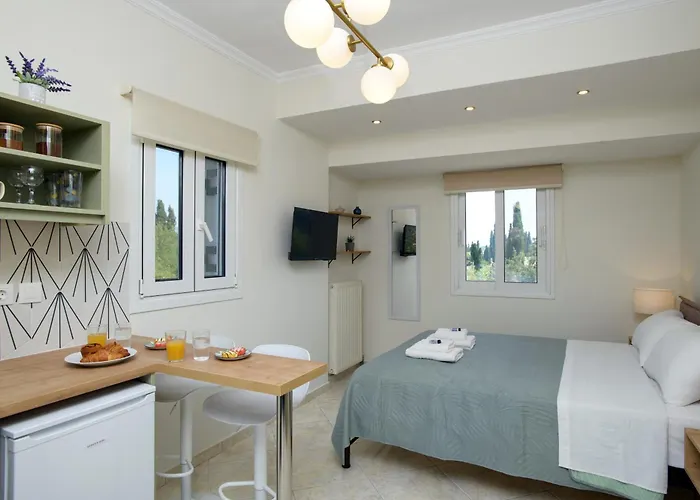 Kanali Hill Studio位于Kanálion,距离科孚岛国际机场有5公里,公共区有无限网络。 在厨房里还有烤面包机 和烤箱等用具。